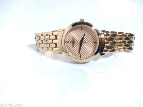 Golden color Designer Analog watch for womens Name: Golden color Designer Analog watch for womens Strap Material: Brass Dial Color: White Dial Design: Ethnic Mechanism: Quartz Power Source: Original Battery And Button Water Resistance: Yes Net Quantity (N): 1 Introducing a timeless accessory that effortlessly merges classic elegance with modern sophistication – this analog watch for women is a symbol of refined style. The sleek, rose gold stainless steel case embraces a minimalist dial adorned with delicate hour markers and slender hands, ensuring a graceful yet functional design. The genuine leather strap complements the watch's aesthetic, providing durability without compromising on style. With precise quartz movement, this watch offers reliability, while its water-resistant feature adds practicality to its charm. Elevate your look with this understated timepiece, a perfect blend of tradition and contemporary fashion, making a statement without saying a word. Sizes: Free Size Country of Origin: India