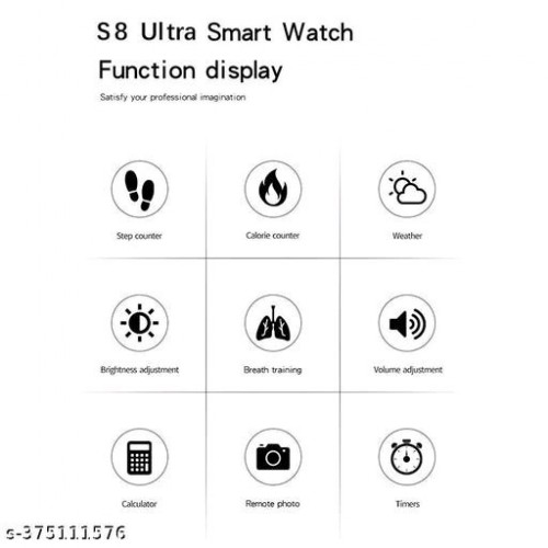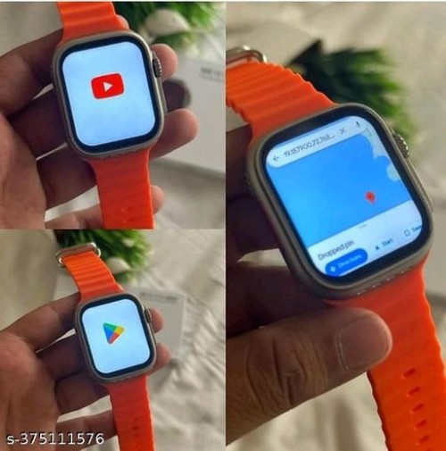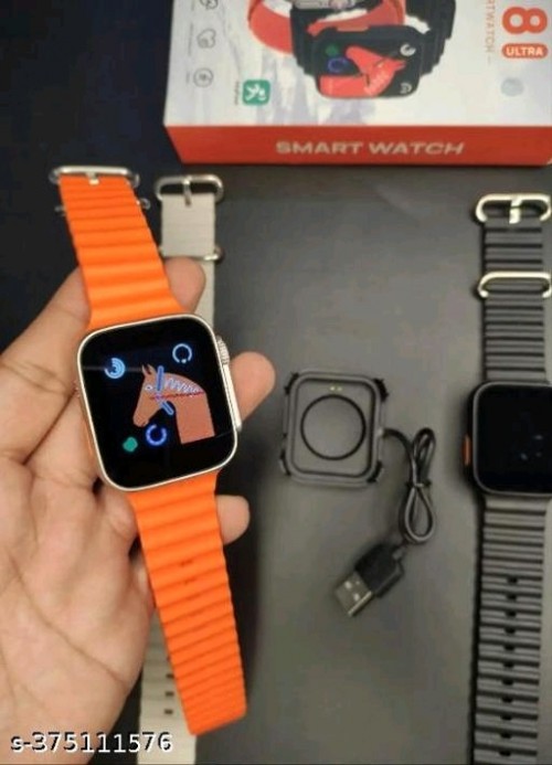 New S8 ULTRA 4G Smart Watch Wifi GPS 4G Network Smartwatch Smartwatch (Orange Strap, Free) Name: New S8 ULTRA 4G Smart Watch Wifi GPS 4G Network Smartwatch Smartwatch (Orange Strap, Free) Color: Orange Compatible OS: Android & iOS Features: Wi-fi Ideal For: Unisex Net Quantity (N): 1 Warranty Period: 1 Month Warranty Type: Carry In Name : S8 Ultra Series Smart Watch Body Temperature Monitor, Bluetooth Call Smartwatch (Orange Strap, Free) Battery Charge Time : 1 Hour Battery life : 20 Hours Bluetooth Range : 30m Charging Time : 1 Hour Color : Multicolor Compatible OS : Android & iOS Dial Shape : Square Display Type : AMOLED Features : Touchscreen Ideal For : Unisex Item Model Number : S8 ultra smartwatch Net Quantity (N) : 1 Strap Material : Aluminium Type : Active 2 Warranty Period : 1 Month Warranty Type : Pick Up Water Resistant : Yes Smartwatch bands are interchangeable wristbands designed to be used with various smartwatch models. Smartwatch bands are available in different sizes to accommodate various wrist sizes, ensuring a proper fit for the user. Many bands feature quick-release mechanisms that allow for easy installation and removal without the need for additional tools. Some bands come with additional features such as built-in GPS trackers, heart rate monitors, or fitness tracking capabilities, enhancing the functionality of the smartwatch. Water-resistant or waterproof bands are available, allowing users to wear their smartwatches during swimming or other water-related activities without worrying about damage. Country of Origin : India Country of Origin: India